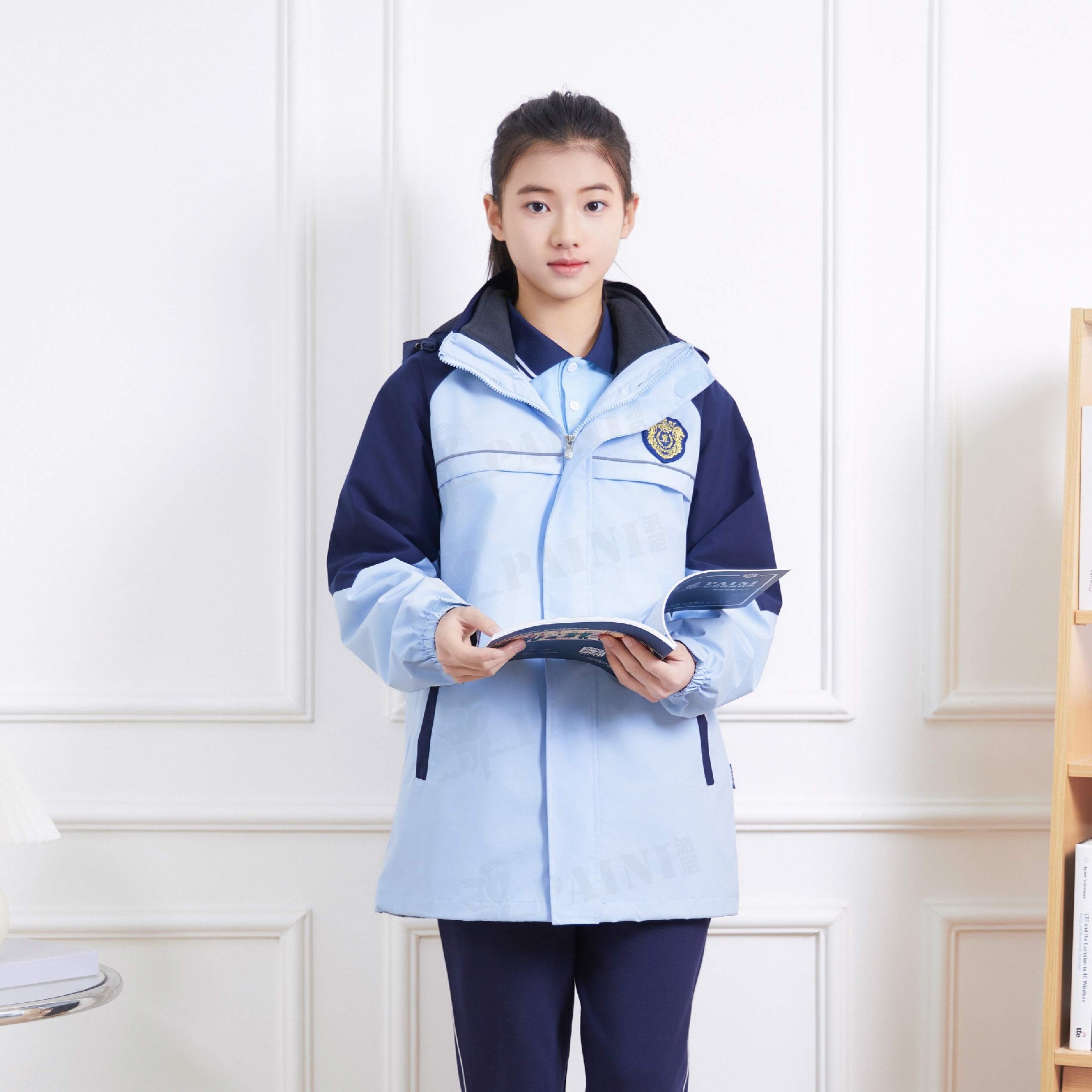 所有面、辅用料严格选用符合国家安全环保标准、孩童健康标准、人体舒适要求的面料。在此基础上,按照地区和校方定位确定合理价格的不同产品线供校方选择。